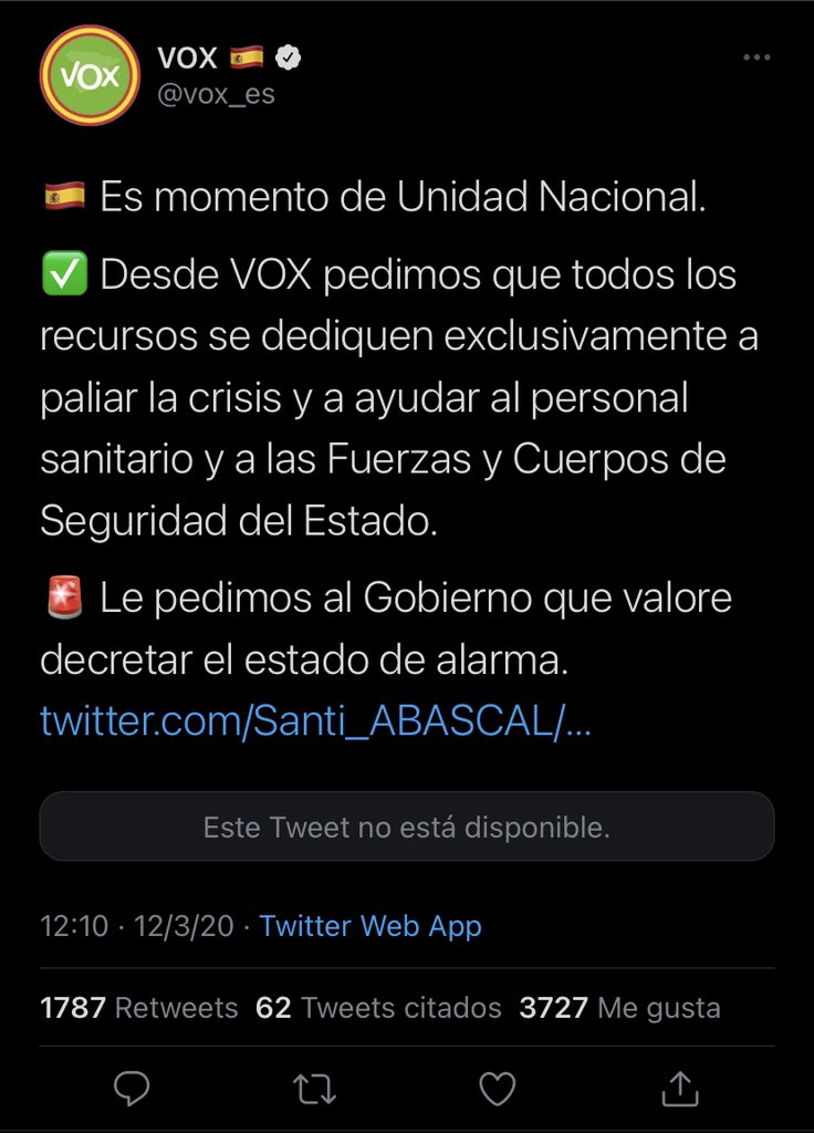 Antoniomaestre On Twitter Vox En Marzo De 2020 Pidiendo El Estado De Alarma Vox En Junio De 2021 Celebrando Que El Tc Declara Inconstitucional El Estado De Alarma Que Pidieron Y Luego