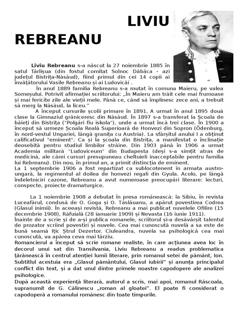 Biografia Lui Liviu Rebreanu Referate Pentru Tine